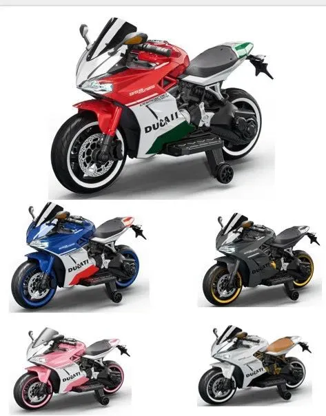 Motocicleta grande para niño modelo XSDU-959, 12V4.5A, luces, sonidos, USB, un año de garantía, disponible en rojo, verde y rosado, precio ₡125000.